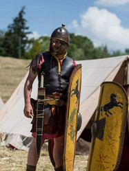 They were the first of the legion's three lines. Equipped with pilum, Montefortino-type helmet, oval shield and spanish-type sword, they owe their name to the hastae (spears) they carried in origin. They were the first to be engaged in the fight, after having thrown their pila (heavy javelins) . They were from the lower classes of census and were amongst the youngest citizens, thus fit for first line fight.